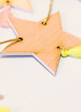 Our wood garland is a perfect addition to any party or home decor. Our star garland is laser-cut wood, hand-painted on the sides, and has an added fun tassel to the bottom of each star. Perfect for a backdrop, room decor, baby shower and more and to use over and over again.